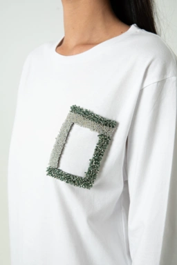 KYLAU - Frame Grid White Tee in Long Sleeve